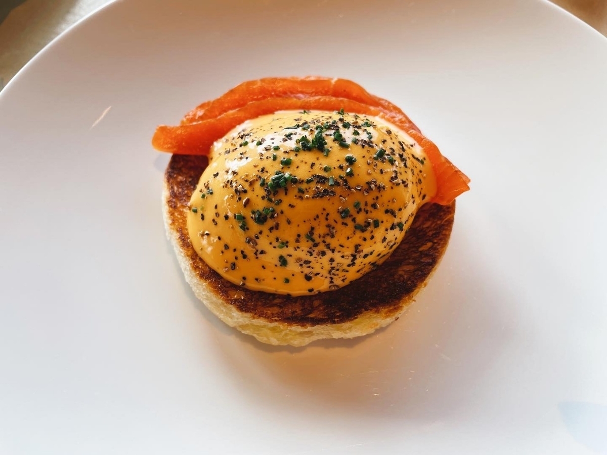 ・ポーチドエッグ 長野産スモークサーモン オランデーズソース