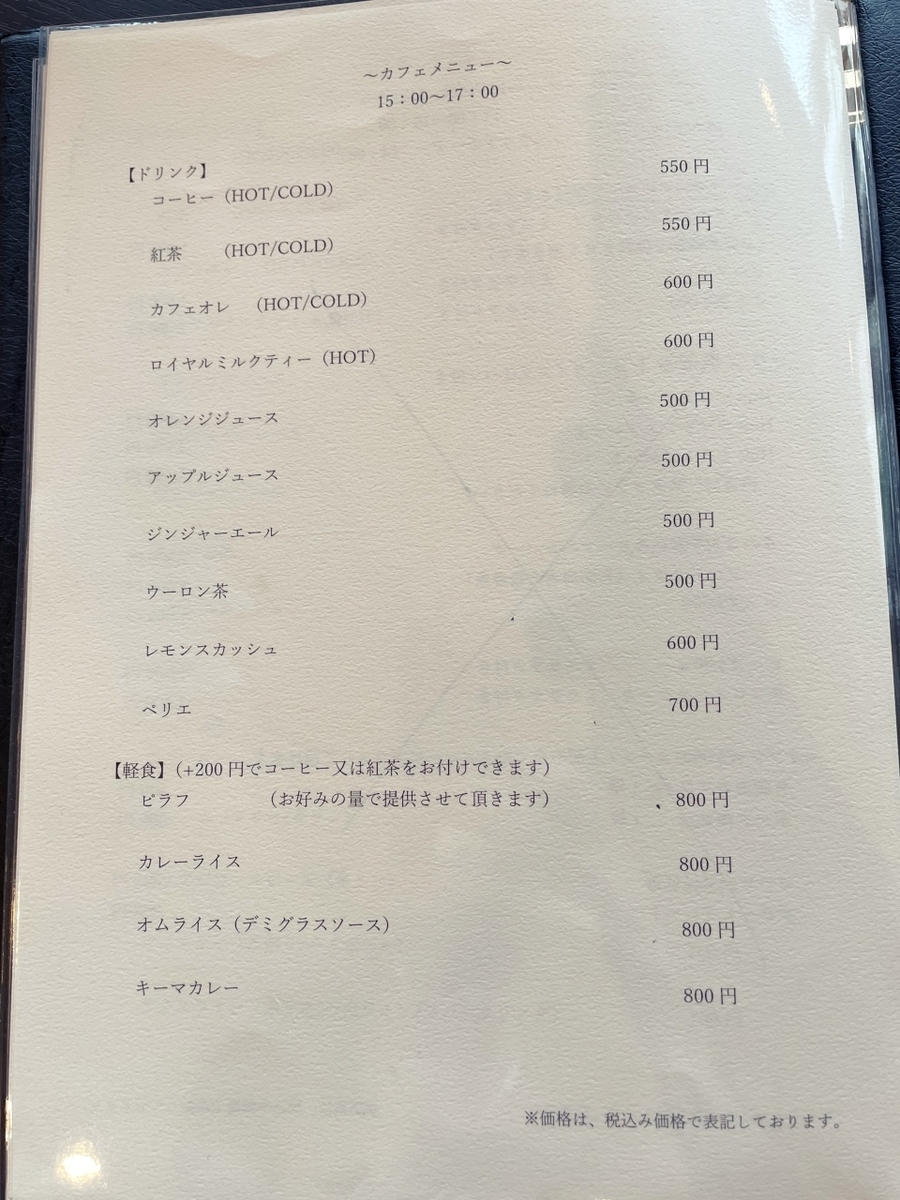 軽食のピラフ、カレーライス、オムライス、キーマカレーは800円。